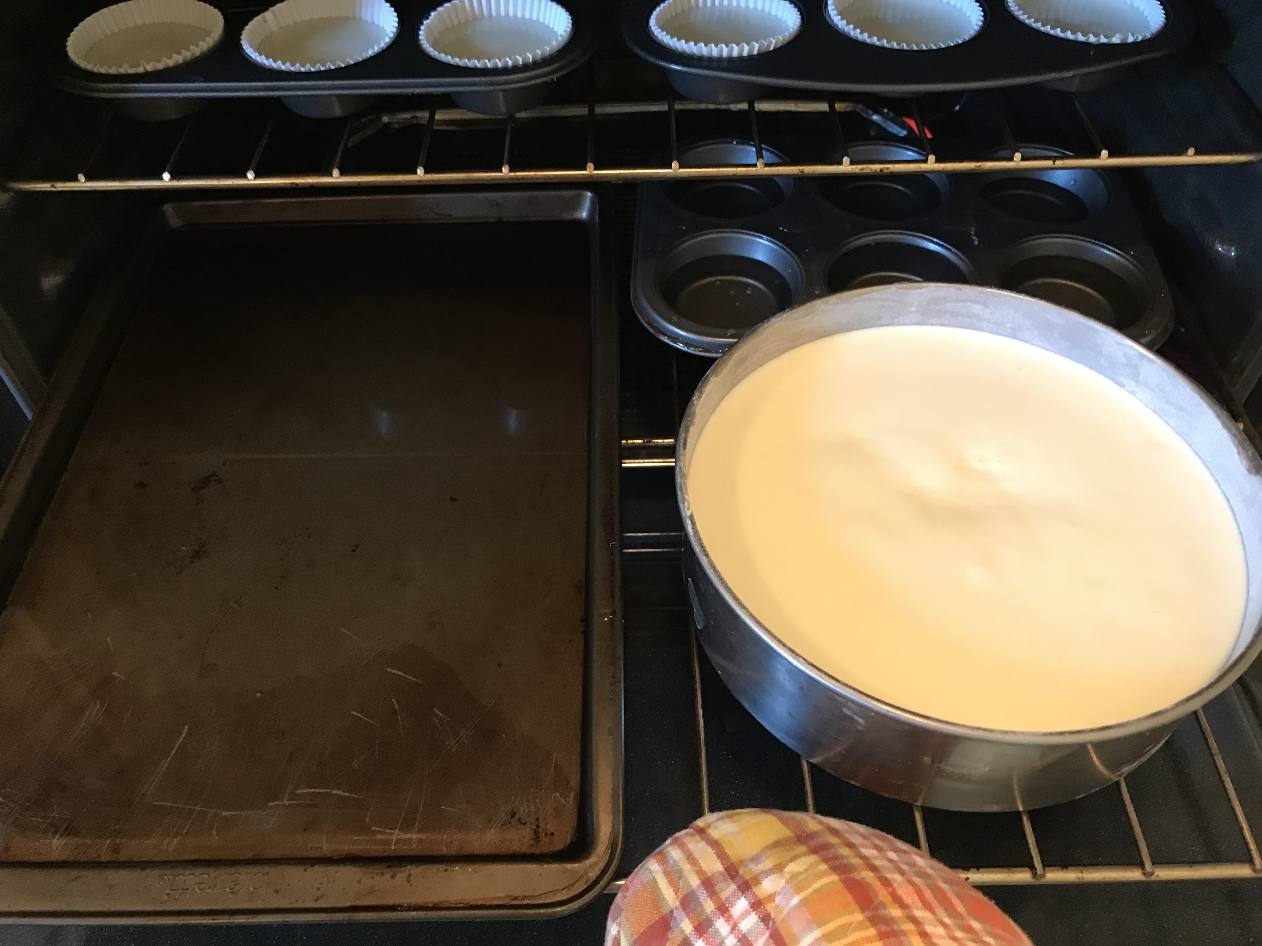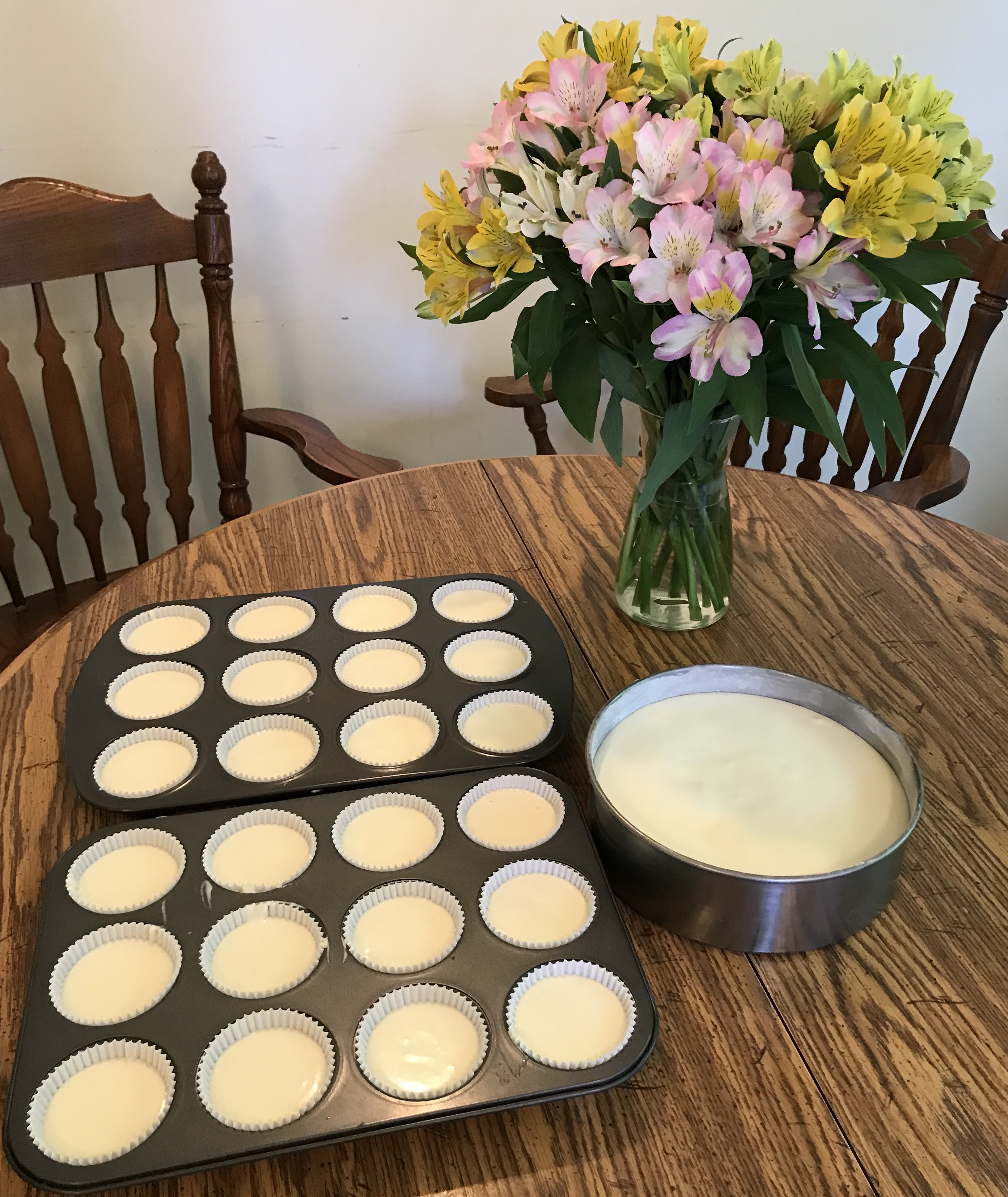 Bake 45 minutes for the cupcakes and 80 minute for the 8-inch cake