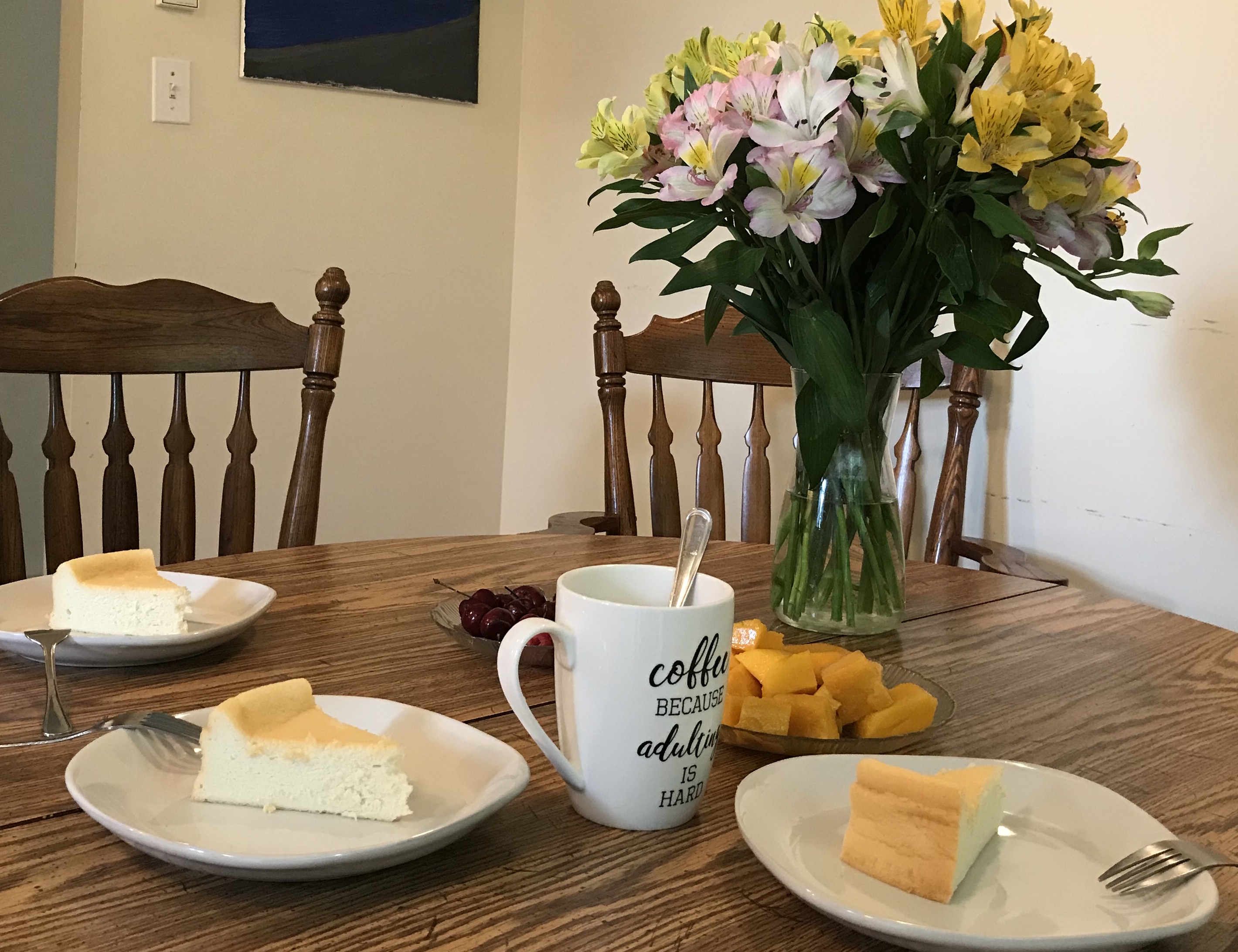 When the baking finish, turn out the cheesecake from the pan to the plate and flip it over to another plate.
